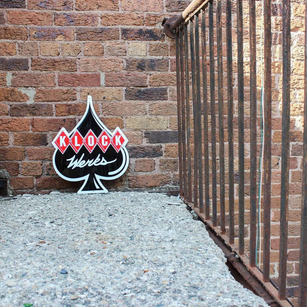 The Klock Werks Metal Tacker Sign is bringing retro back! Proudly display your passion for our brand in your garage with this embossed metal sign that measures 14.25" wide x 18" tall.